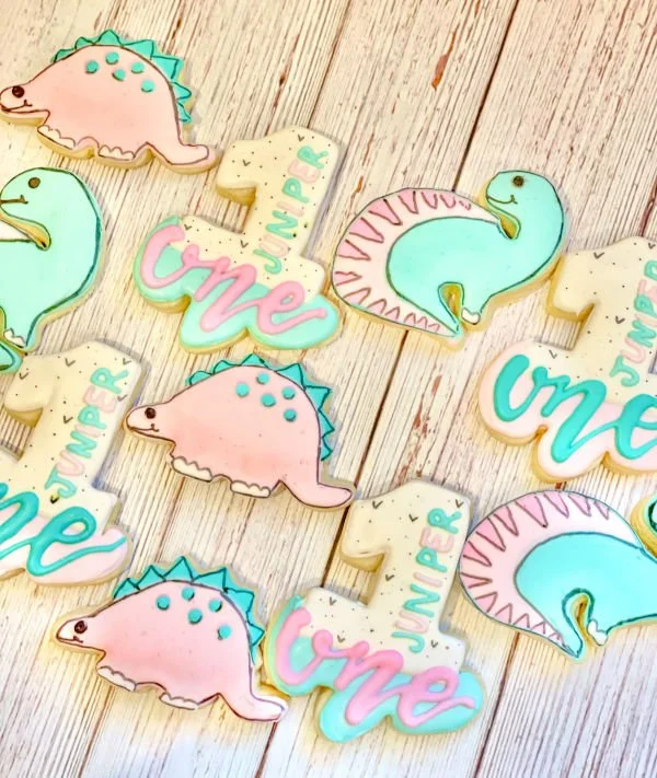Our signature vanilla bean sugar cookie decorated to make the perfect party favor!